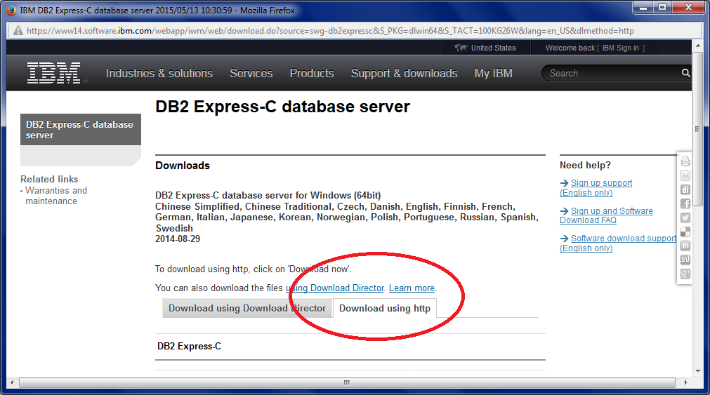 Para comenzar debemos ir a la página de IBM, buscar el producto y descargrlo, el url es el siguiente:http://www-03.ibm.com/software/products/en/db2-express-server-edition
